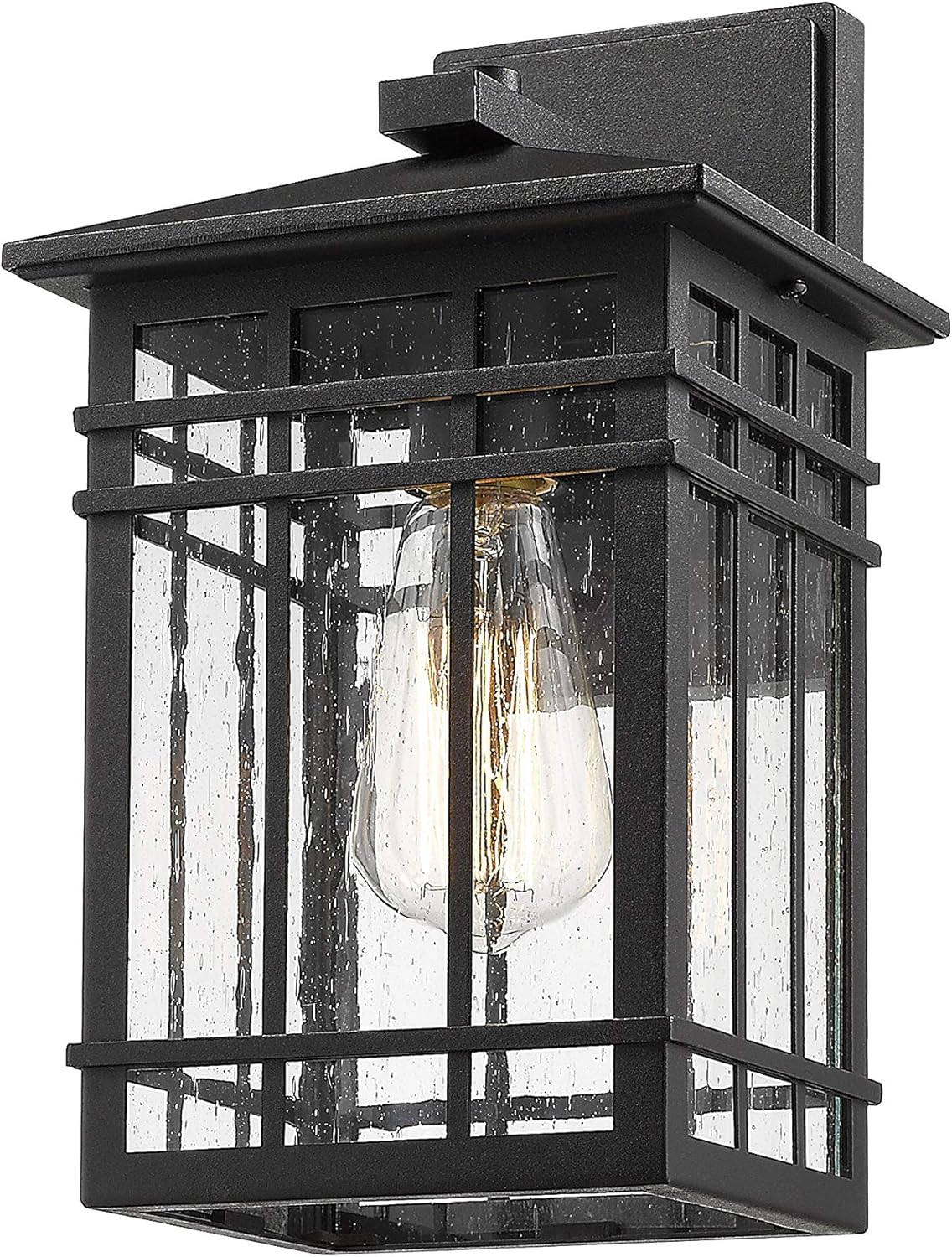 • ✔ COMTEMPERARY DESIGN--This wall lantern is in black finish metal construction with seeded glass shade provides a beautiful lighting for entryway, doorway, foyer, corridor, balcony, patio and porch. It’s ideal for installing in both farmhouse or modern building fixture.
